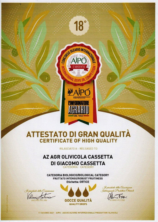 I nostri oli sono Biologici certificati e garantiti, la certificazione riguarda l’intera filiera, dal campo all’imbottigliamento, quindi si ha piena garanzia relativamente alla salubrità del prodotto, privo di residui tossici. Acquistando prodotti bio inoltre si incentiva l’agricoltura rispettosa dell’ambiente che tutela gli insetti utili come le api, coccinelle ed altri che combattono gli insetti dannosi.
